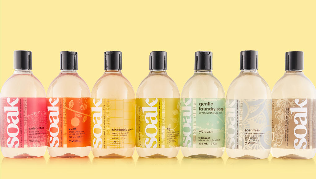 That’s why we spend a lot of time and effort formulating Soak fragrances to make your laundry smell lovely. When you use Soak, not only does doing laundry become more of a pleasure, every time you put on your clean clothes, you get a little aromatherapy. From the citrusy tang of Yuzu to the joyful scent of Celebration, Soak is about feeling wonderful from start to finish.